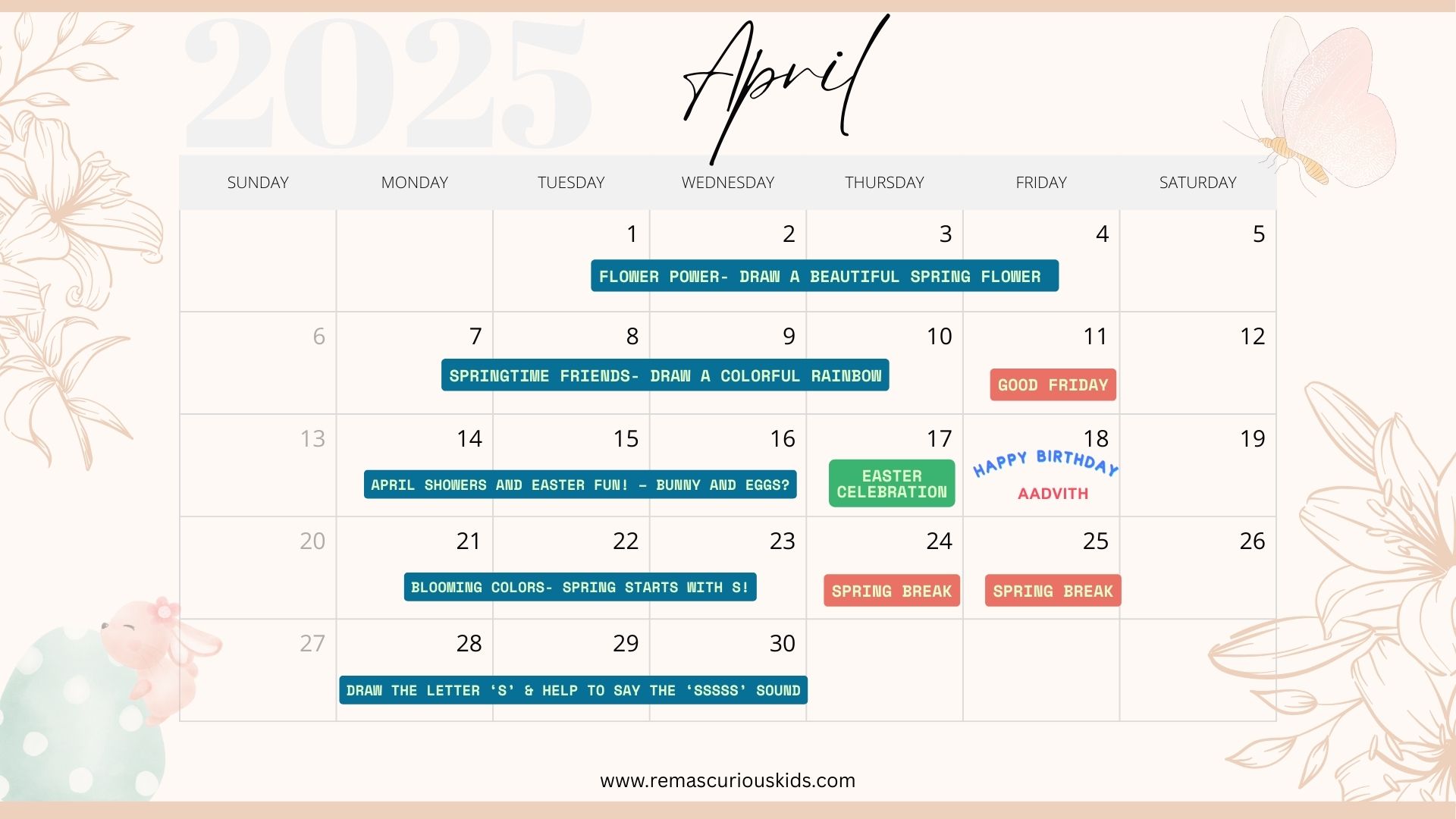 Our calendar helps parents stay informed about school events, lesson plans, educational activities, important dates, festivals and celebrations, field trips, parent-teacher meetings, and birthday parties.